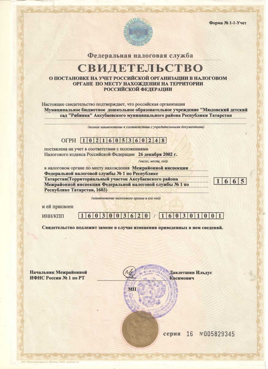 Свидетельство ЕГРЮЛ от 24.12.2011 года