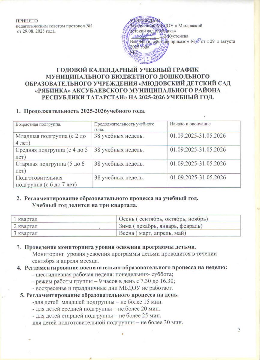 Учебный календарный график на 2025-2026 учебный год