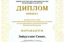 Ученик 11 класса Самат Зайдуллин стал призером регионального этапа всероссийской олимпиады школьников и студентов по государственным языкам Российской федерации. Поздравляем! Желаем успехов и на других предметных олимпиадах!