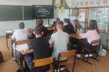 Учащиеся 8 и 11 классов в видеозале посмотрели "Загадка пятого пастулата"