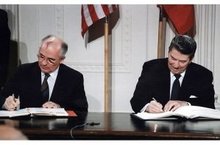 8 декабря 1987 года генеральный секретарь ЦК КПСС Михаил Горбачев и президент США Рональд Рейган подписали в Вашингтоне Договор о ликвидации ракет средней и меньшей дальности (ДРСМД, РСМД) (англ. Intermediate-Range Nuclear Forces Treaty, IRNFT) – первое соглашение, предусматривавшее абсолютное сокращение вооружений. Уничтожению подлежали 2611 ракет.