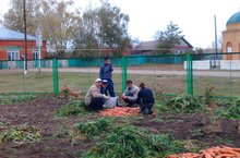 Бүген мәктәп укучылары бакчада үз көчләре белән үстергән көзге уңышларын җыеп алдылар 07.10.2015