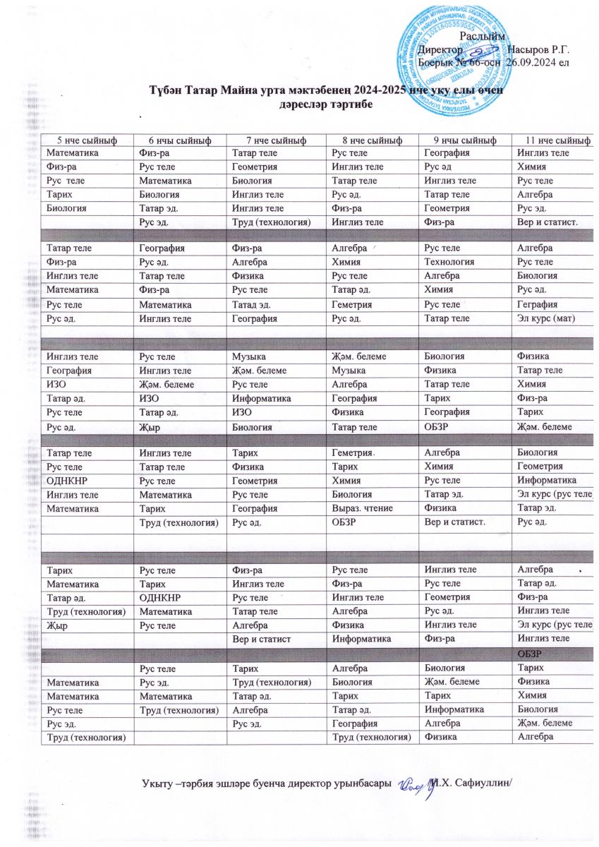 Расписание занятий 2024-2025/ Дәресләр расписаниесе