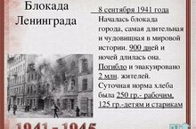 Блокада Ленинграда (ныне — Санкт-Петербург) во время Великой Отечественной войны длилась с 8 сентября 1941 года по 27 января 1944 года. Блокада продолжалась 872 дня (в ряде источников — 871 день).