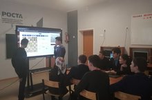 19 декабрь көнне информатика бүлмәсендә 9 сыйныфлар белән ТОЧКА РОСТА проекты буенча " Интерактив тактадан эффектлы файдалану " дигән темага дәрестән тыш чара үтте