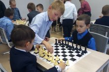 Беренче сыйныф укучылары шахмат уйнарга өйрәнәләр.