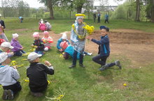 Шуннан соң “Кем кая, ә без кинога “ (мультфильм карадык). Ә аннан соң Пушкин әкиятләренә рәсем конкурсы узды. Балалар Пушкин шигырьләрен яттан сөйләп ярыштылар. Көнебез викторина белән тәмамланды: