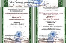В XIII межрегиональном конкурсе "Туган телем-серле телем" ученики 2 класса Гатауллина Айсылу , Замалеев Дамир и их классный руководитель Нуруллина Руфия заняли призовые места.