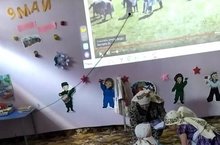 Сегодня в нашем детском саду прошёл праздник посвящённый дню Победы. Ситдикова Гульсира (труженик тыла) рассказала детям о том, как не легко далась нам эта Победа. Как наши дедушки и бабушки воевали не жалея своих жизней, чтобы внуки и правнуки жили в мире. Дети пели военные песни,читали стихи,показали инсценировку " Сабан туй начала войны"и "На поле боя".