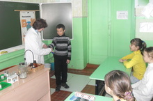 Очень много впечатлений сложилось у ребят после посещения кабинета химии. Людмила Васильевна доступно объяснила о влиянии кислот на окружающую среду, на человека, о необходимости питаться, свои сообщения дополняла опытами.