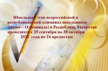 Школьный этап всероссийской и республиканской олимпиад школьников в РТ проводится с 25 сентября по 28 октября 2022 года 23.09.2023