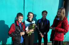 В День Учителя выпускники школы каждому учителю вручили цветы и грамоты.