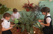 Ученики 1 "а" класса любят ухаживать за цветами.