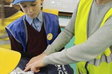 Руководитель отряда "ЮИД" Сибгатуллина З.Р. провела занятие и в заключение прикрепили к портфелям световозвращающие элементы