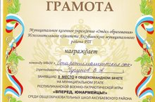 В пгт Аксубаево проводился муниципальный этап Республиканской военно-патриотической игры " Вперёд, Юнармейцы!" среди общеобразовательных школ Аксубаевского района. Команда юношей нашей школы приняла активное участие в данном соревновании и заняла почётное второе место.