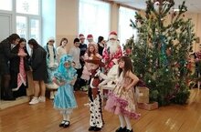 На Новогоднем представлении Дед Мороз вручил подарки учащимся.