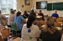 Вместе с советником директора по воспитанию она встретилась с активом школы в Центре детских инициатив.
