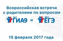 Уважаемые родители и обучающиеся 9 классов! 15 февраля 2017 года руководитель Федеральной службы по надзору в сфере образования Сергей Кравцов в 11 часов по московскому времени проведет всероссийскую встречу с родителями по вопросам проведения государственной итоговой аттестации по программам основного общего образования в 2017 году. руководитель и специалист Рособрнадзора ответят на вопросы родителей, касающиеся:
