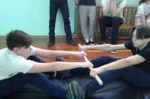 Юноши состязались в подтягивания, отжимание, перетягивание палки, броски мяча в корзину, бег на лыжах, обувание на скорость. В упорной борьбе выиграла команда "Лётчики"