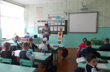 Учащиеся 1 Б класса приняли участие в познавательной игре- викторине по правилам дорожного движения «Красный, желтый, зеленый!». Целью данного мероприятия было закрепление знаний о правилах дорожного движения для пешеходов. Викторина проходила в весѐлой игровой форме, дети с удовольствием выполняли все задания, отгадывали загадки, отвечали на вопросы, играли в игры «Собери знак», «Чего не стало?», разбирали ситуации, как правильно вести себя на улице, вблизи дорог. Мероприятие прошло весело и задорно. В конце мероприятия ребята сделали своими руками поделки светофора.