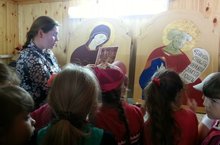 После минуты здоровья, ребята посетили воскресную школу, где познакомились с учителем Иоанном. История святых, создание икон, рукописи – все было захватывающе интересно для ребят. После обеда в детском парке прошли игры «Захват территории», «Одолей нечистые силы».