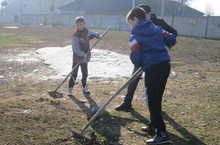 Сегодня учителя и учащиеся нашей школы провели субботник по наведению порядка на территории школы.