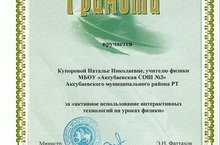 Явилась призером и награждена грамотой Министерства образования и науки РТ учитель физики Купорова Н.Н. за "активное использование интерактивных технологий на уроках физики". Поздравляем!!!