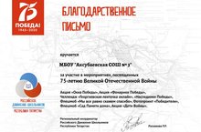За профессионализм, педагогический талант и преданность воспитательному процессу нашей школе было вручено благодарственное письмо Общероссийской общественно-государственной детско-юношеской организацией "Российское движение школьников".