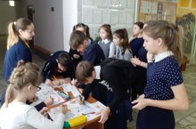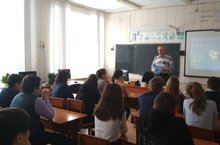 8б сыйныфында " Все для фронта ..." китабы авторы А.М. Евграфов белән очрашу узды. Александр Михайлович китап булдыру идеясе, шулай ук Бөек Ватан сугышы башлануы, сугыш вакытында Аксубай хезмәтчәннәренең тормышы турында сөйләде. Балалар авторны игътибар белән тыңладылар, ә аннары үзләрен кызыксындырган сорауларны бирделәр.
