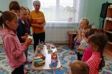 Отряд "Звёздочки" вместе с начальником лагеря Валентиной Михайловной пришли в гости.
