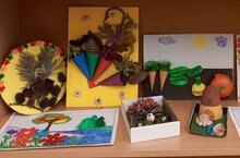 В нашем ДОУ была оформлена выставка поделок из природного материала «Осенний вернисаж». Участниками были предоставлены разнообразные работы, выполненные из природного и материала и в самых разных техниках: объемная аппликация, конструирование и другие.