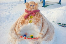 ♦ Приходит сказочная зима и вся местность покрывается красивым снежным покровом. Дети, увидев снег, сразу отправляются на улицу, чтобы кататься на санках, играть в снежки. Зима вызывает чувство радости и искреннего счастья. Действительно, когда выпадает снег, в каждом дворе появляются разные фигуры из снега, в том числе и на территории нашего детского сада. Эта старая традиция живет в сердцах у каждого ребенка и взрослого. Ведь из снега можно слепить все, чем богата фантазия.