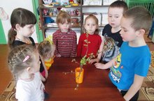 ♦ Дети ежедневно выполняют индивидуальные трудовые поручения. Воспитатели учат их на ощупь определять необходимую температуру воды для поливки растений, сухую и влажную землю, опрыскивать растения, протирать пыль с крупных листьев влажной тряпочкой, а также аккуратно убирать рабочее место. Педагоги стремятся, чтобы воспитанники систематически выполняли свои трудовые обязанности, развивают у них трудолюбие, умение самим участвовать в создании прекрасного.