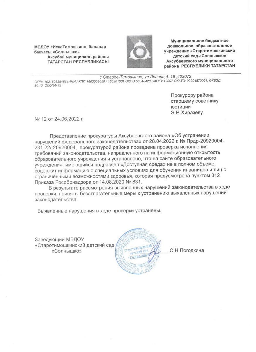 Отчет о выполнении предписания прокуратуры от 28.04.2022г.