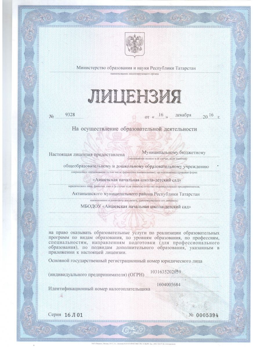 МДОУ «Аишевский детский сад Актанышского муниципального района РТ» (реорганизация)