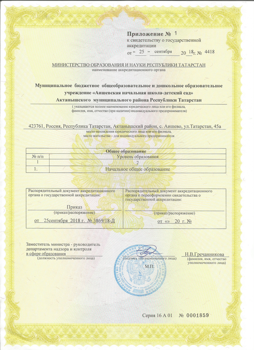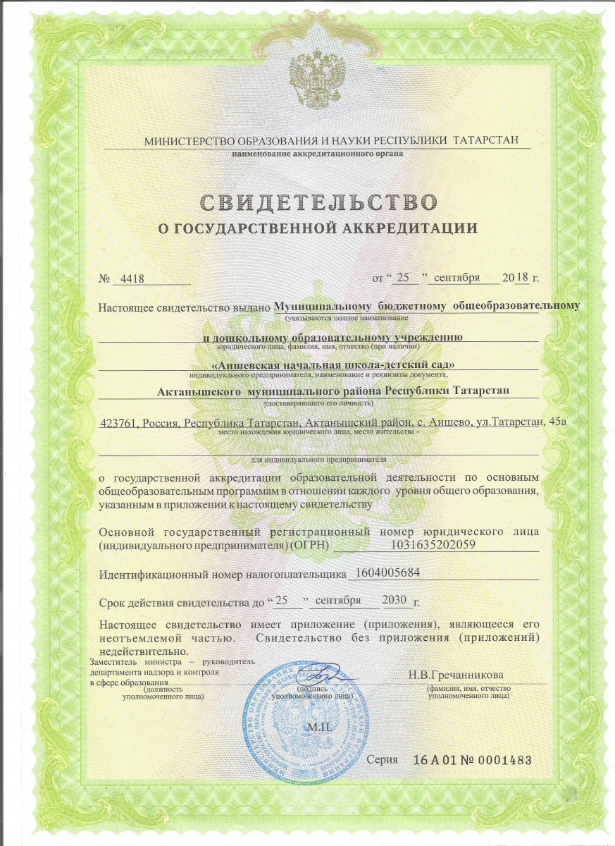 Аккредитация МБОДОУ "Аишевская начальная школа-детский сад"