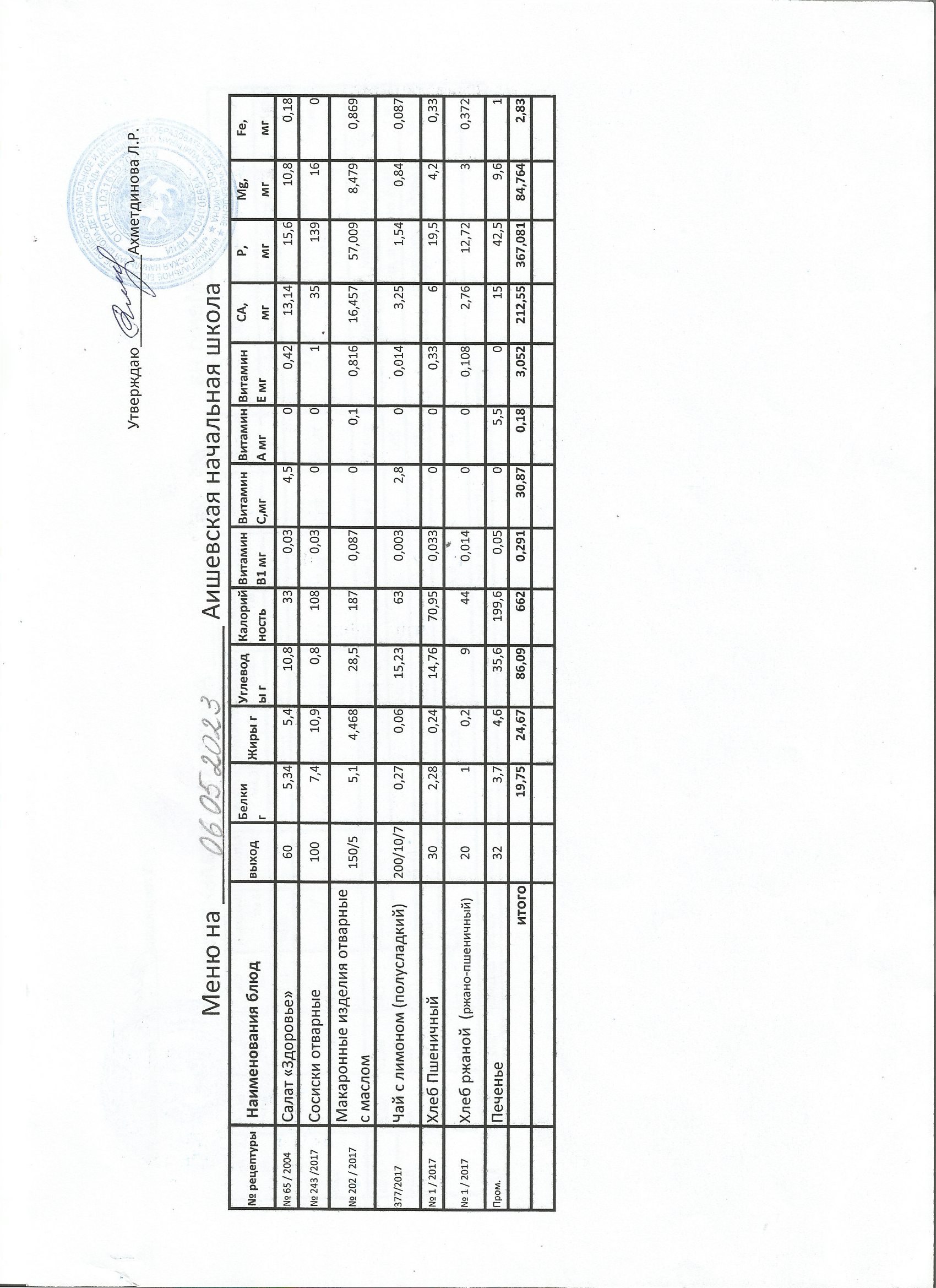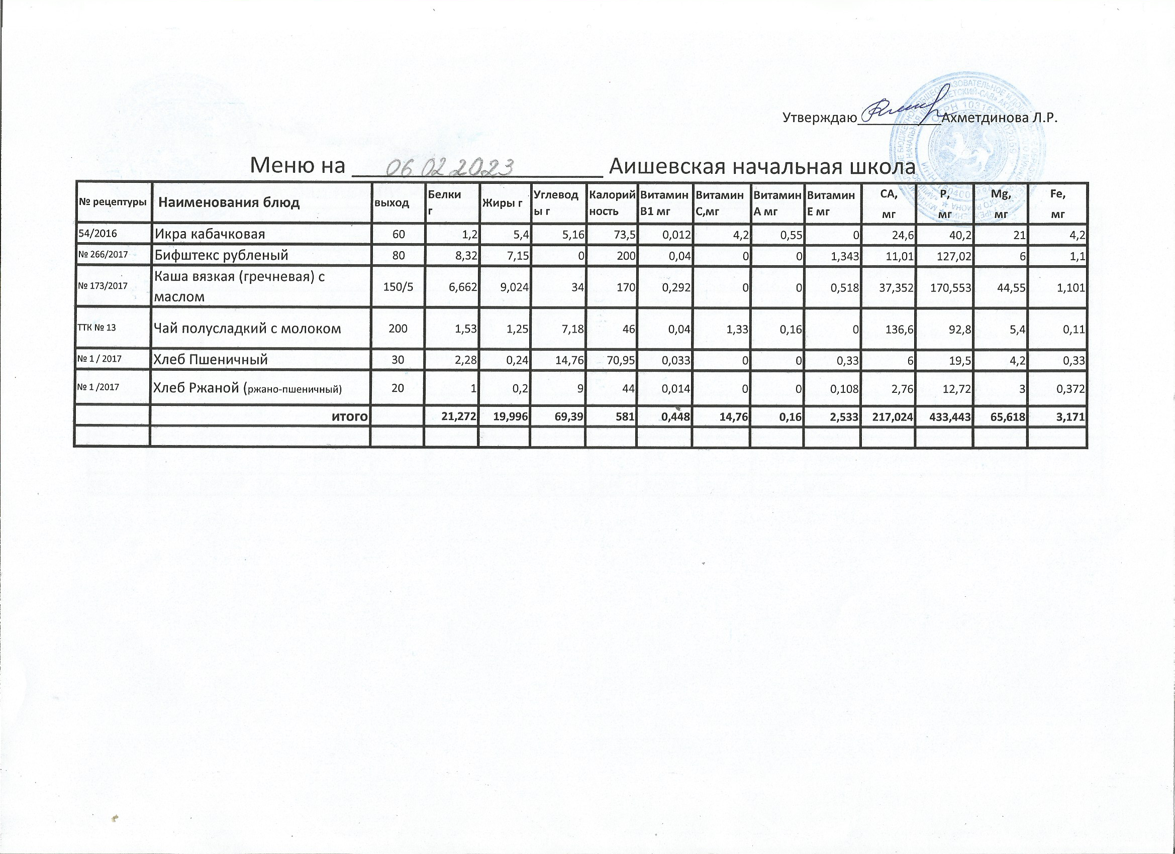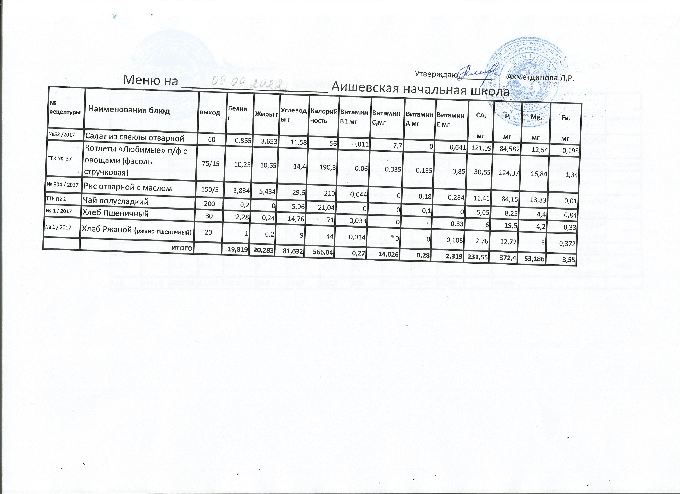меню на 06.09.2022