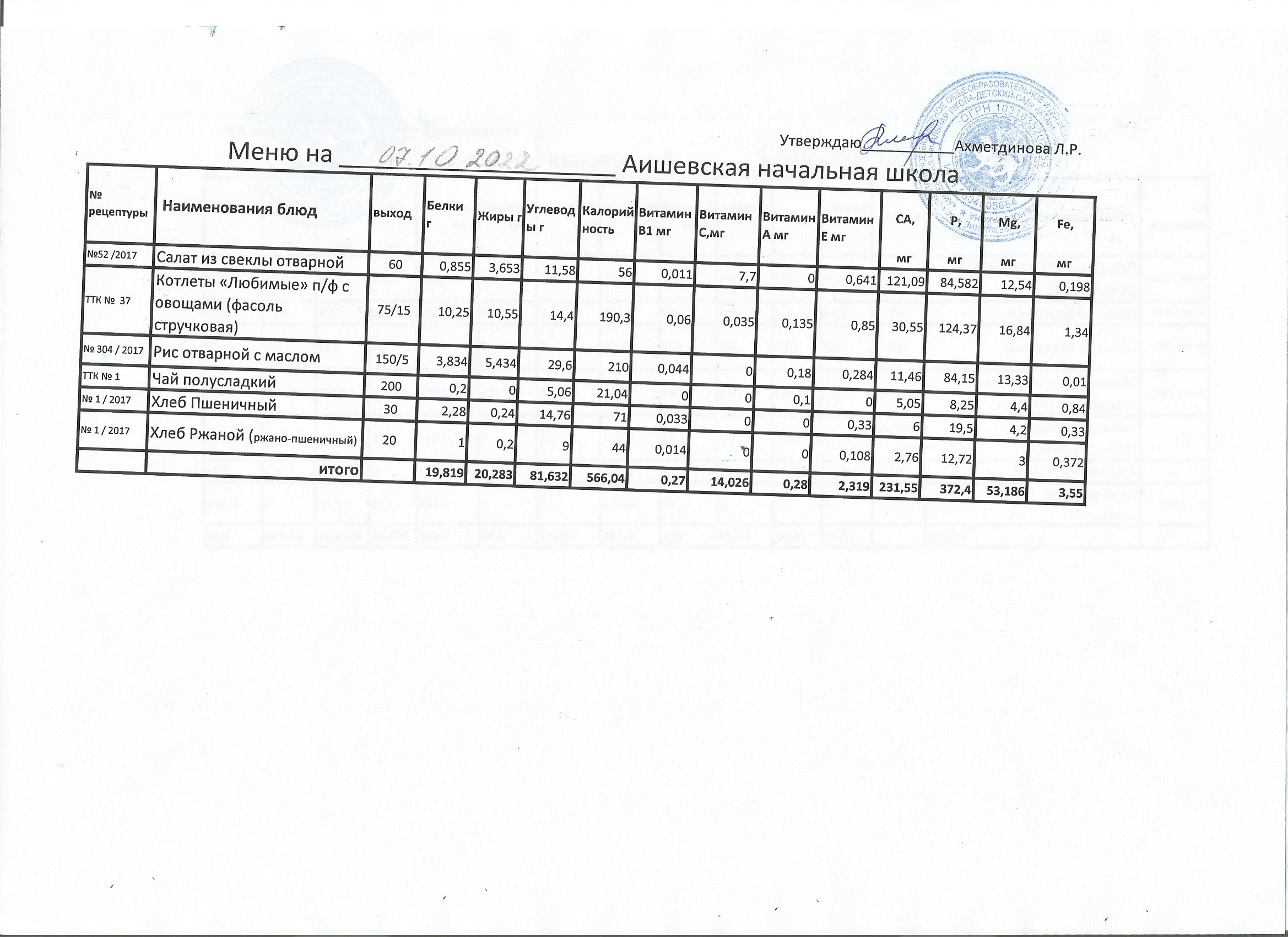 меню  на 7.10.2022