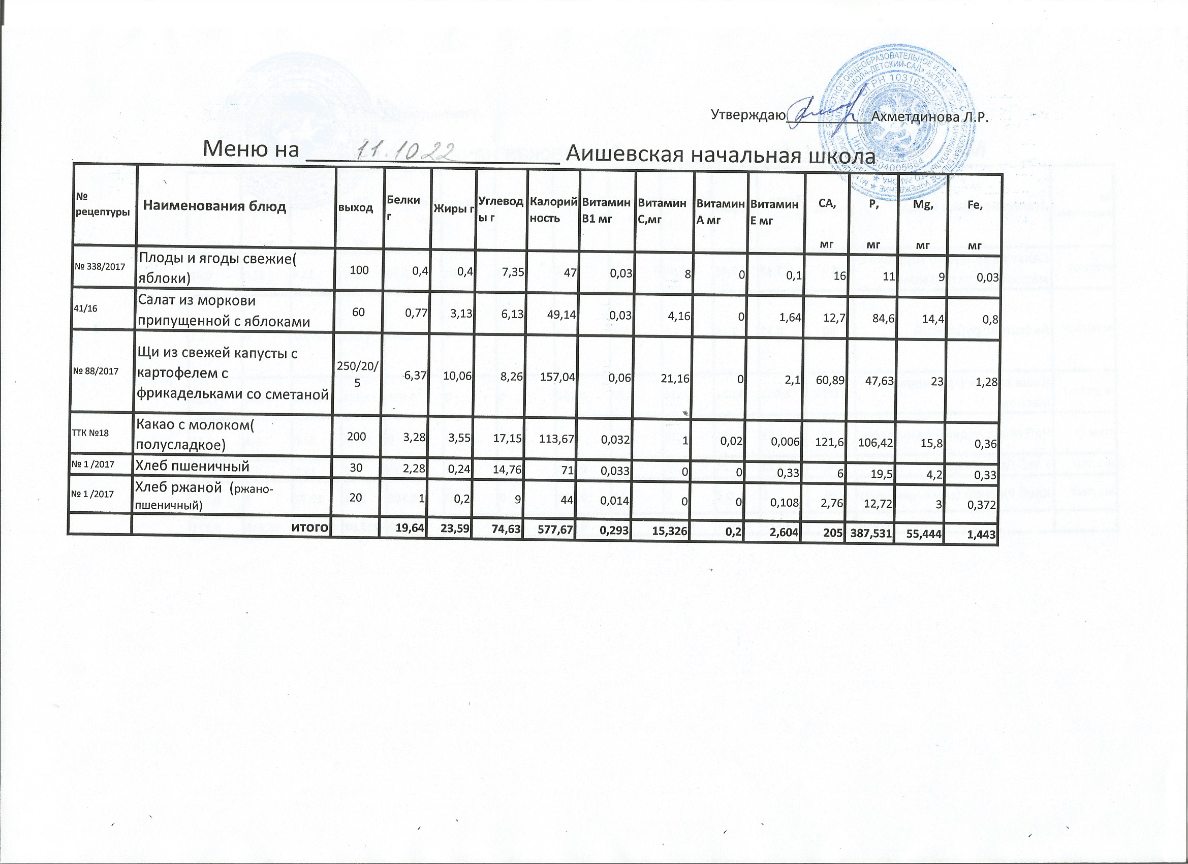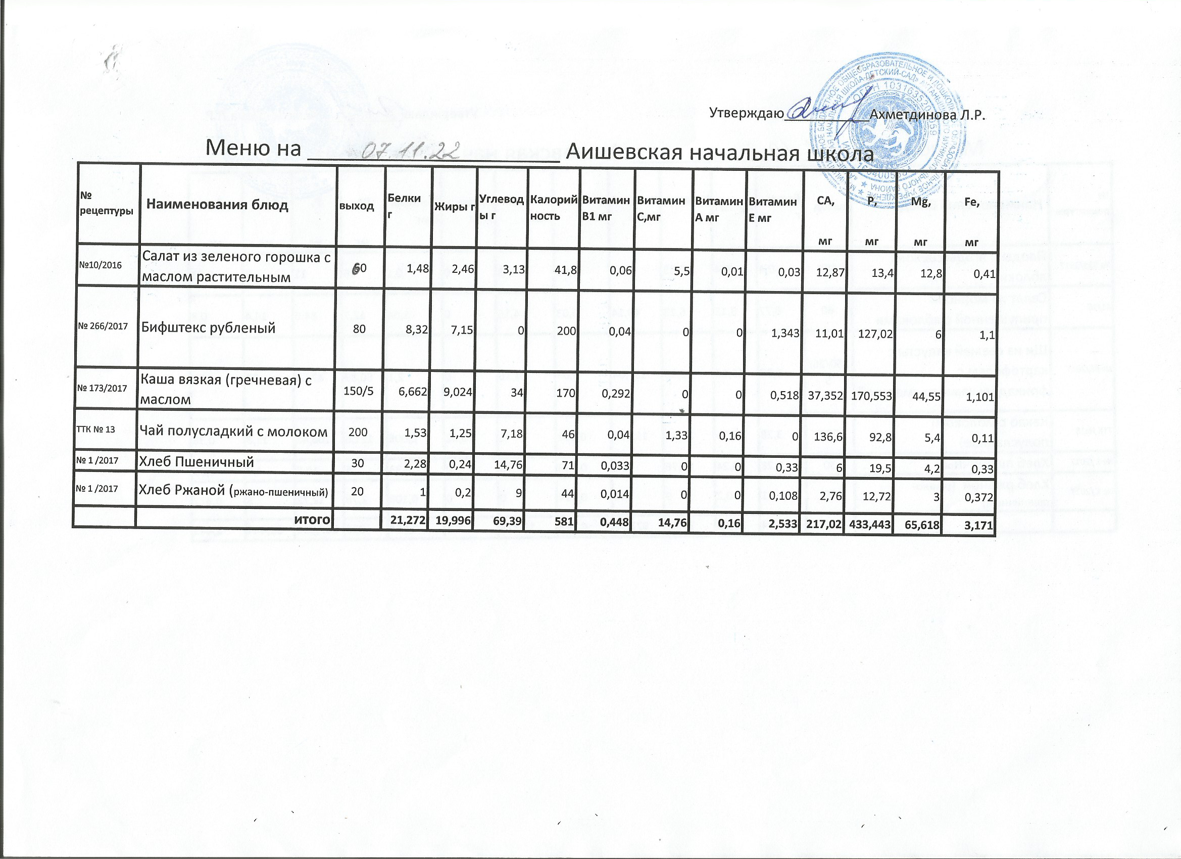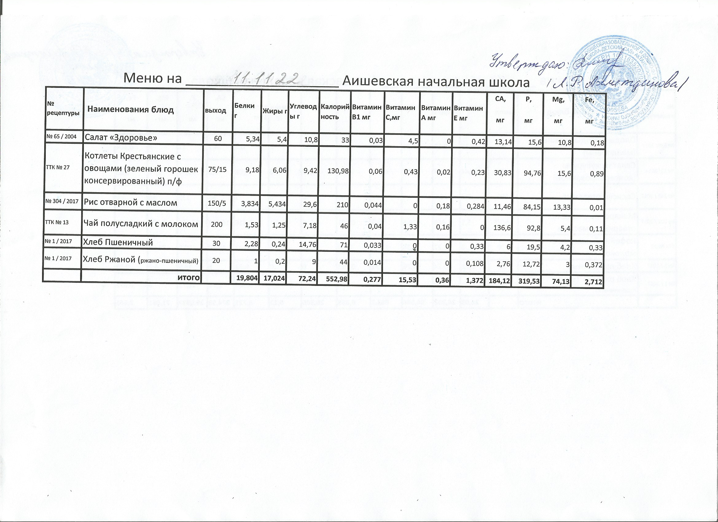 меню на 11.10.2022