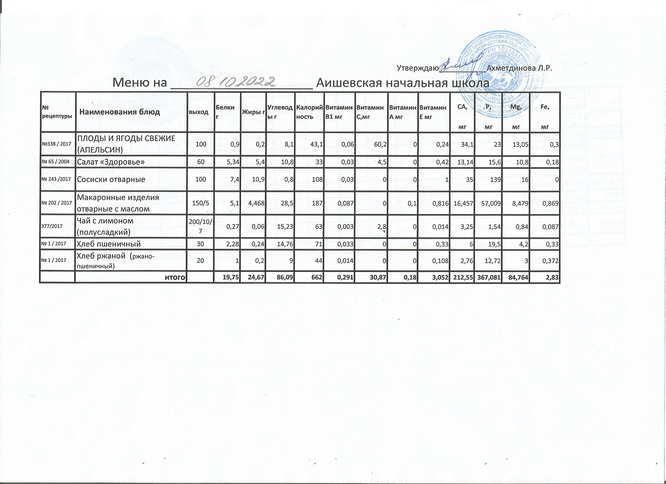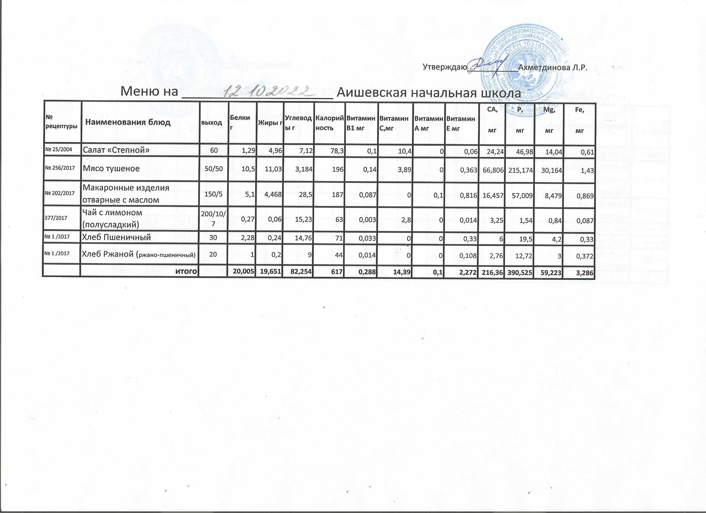 меню на 12.10.2022