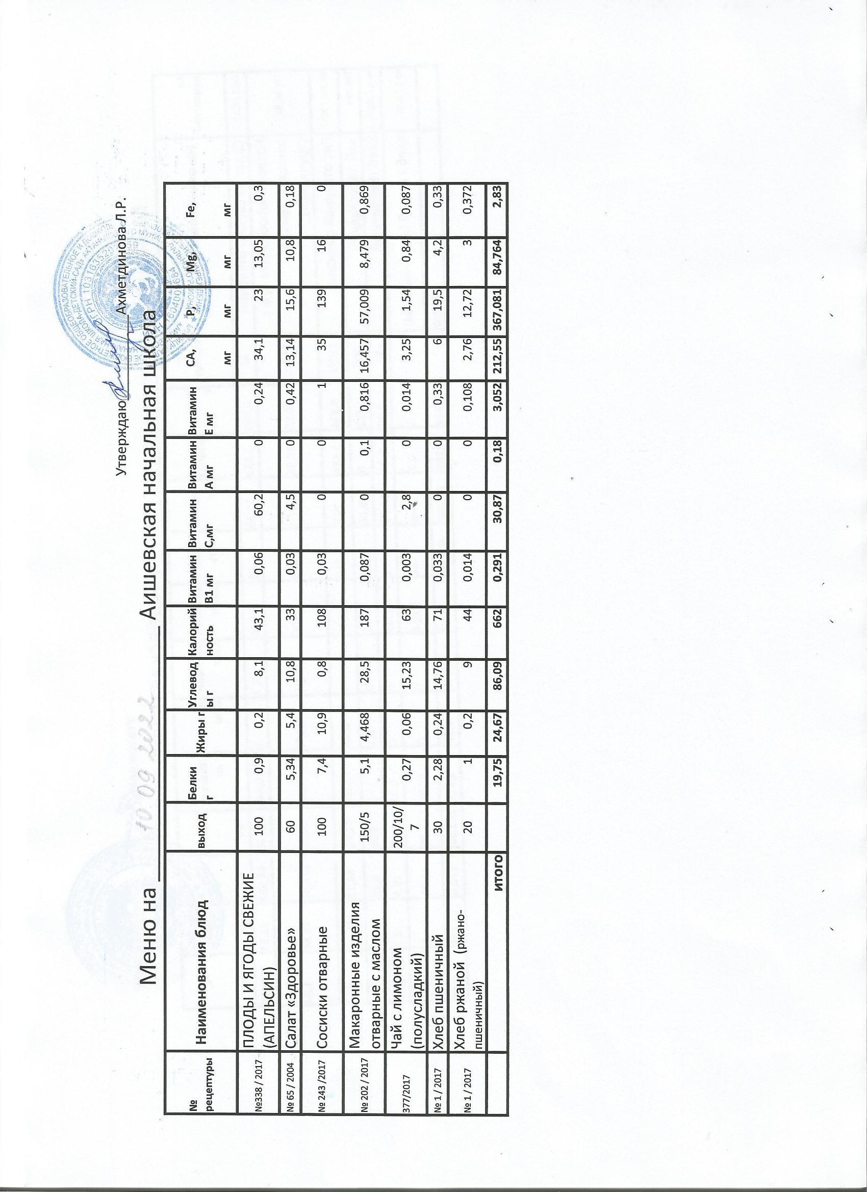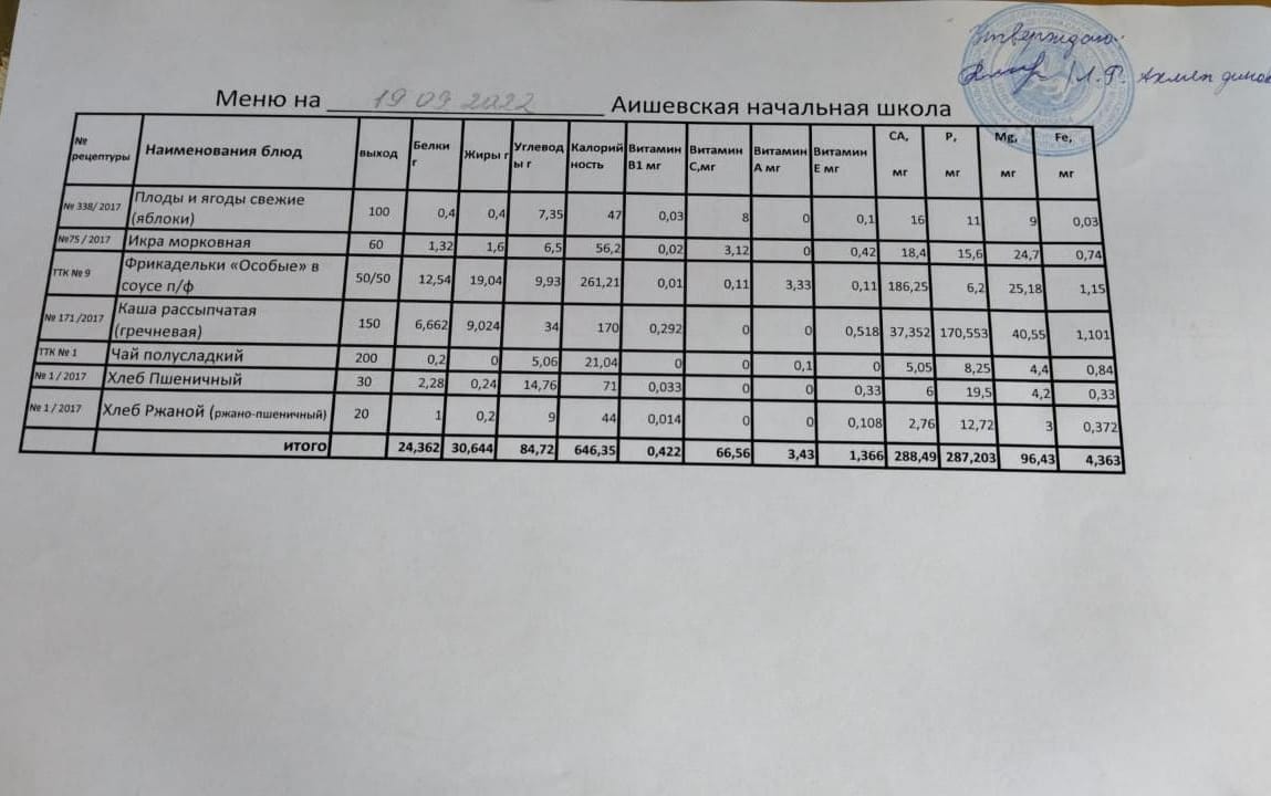 меню на 19.09.2022