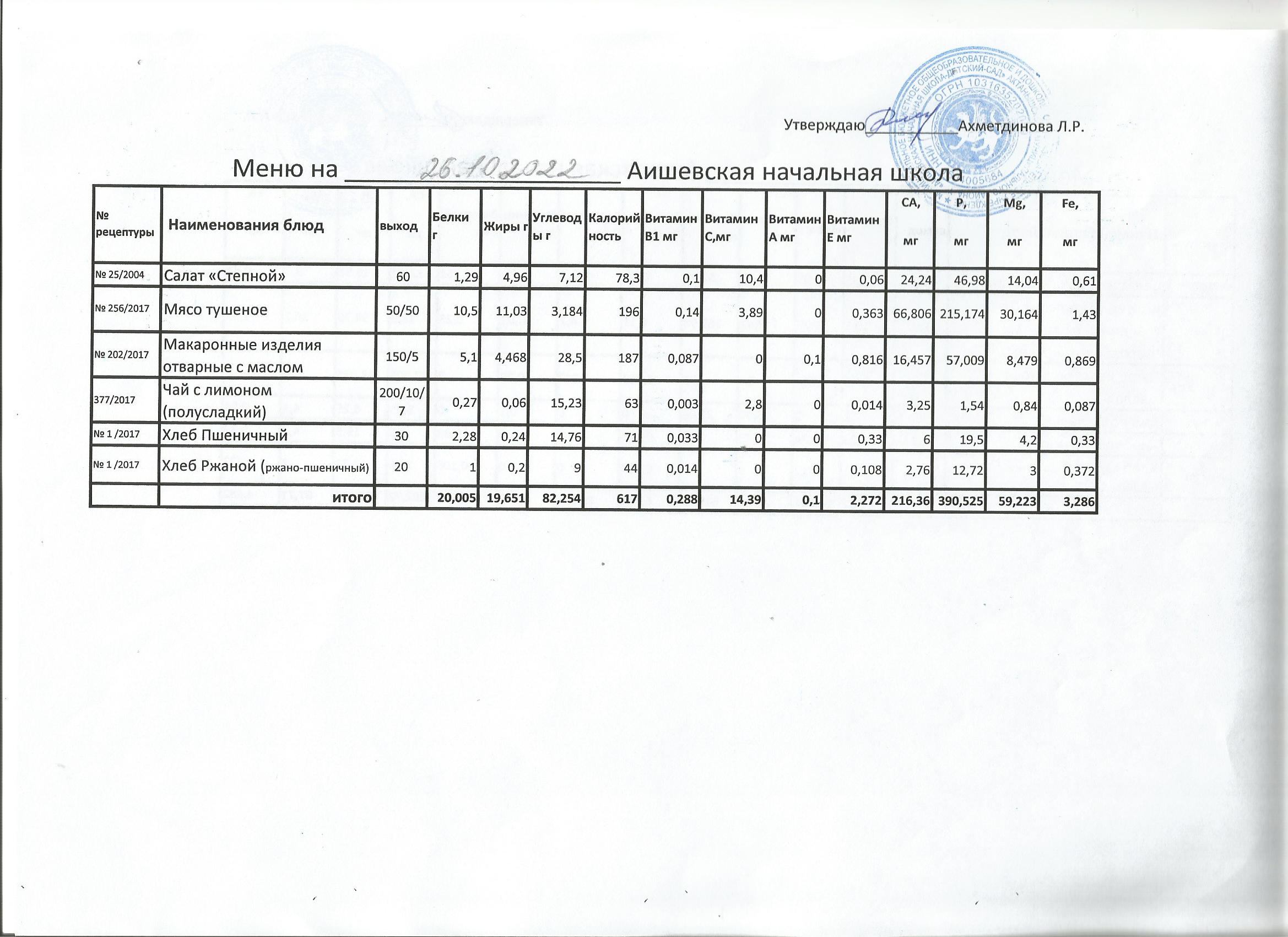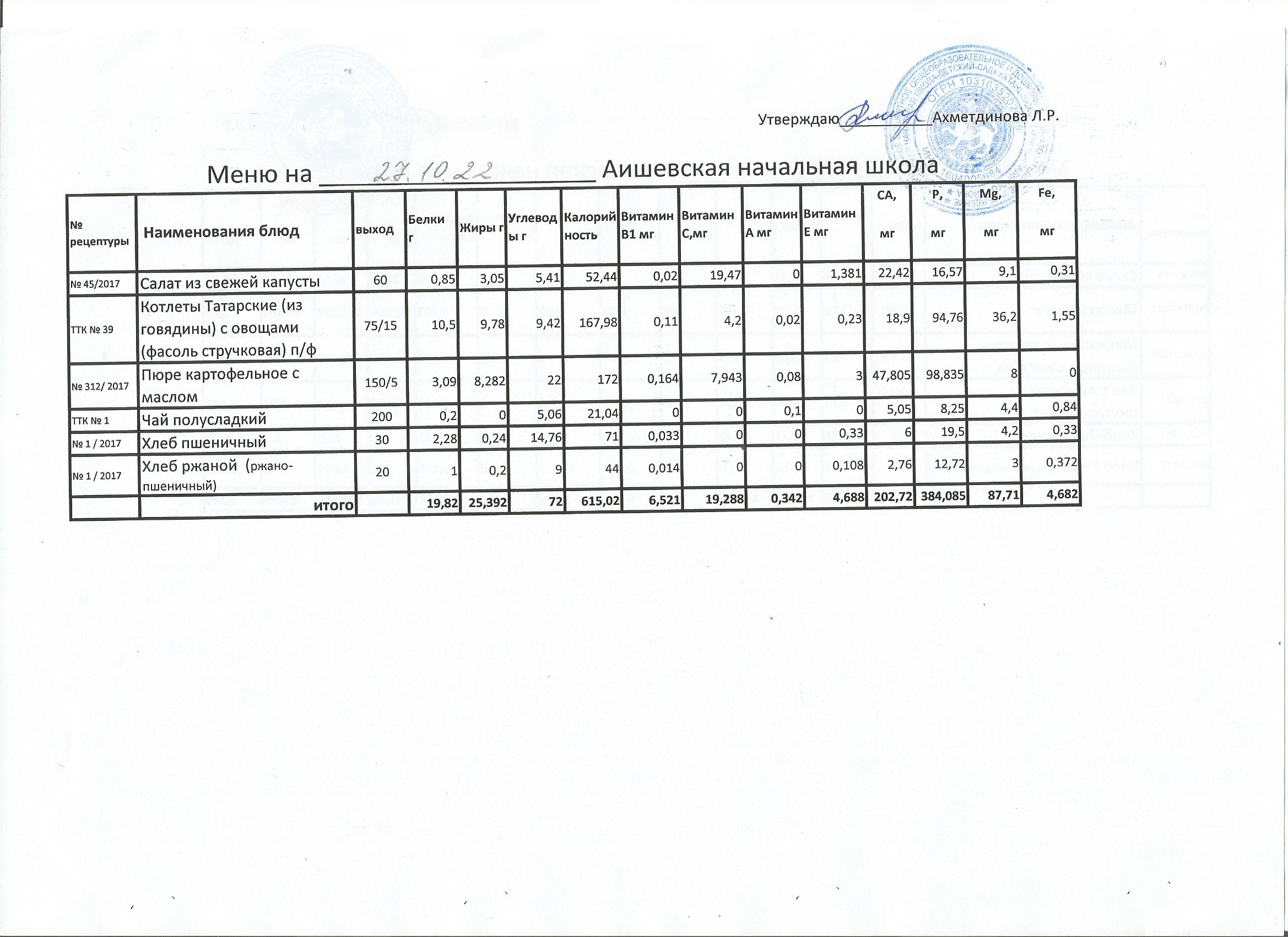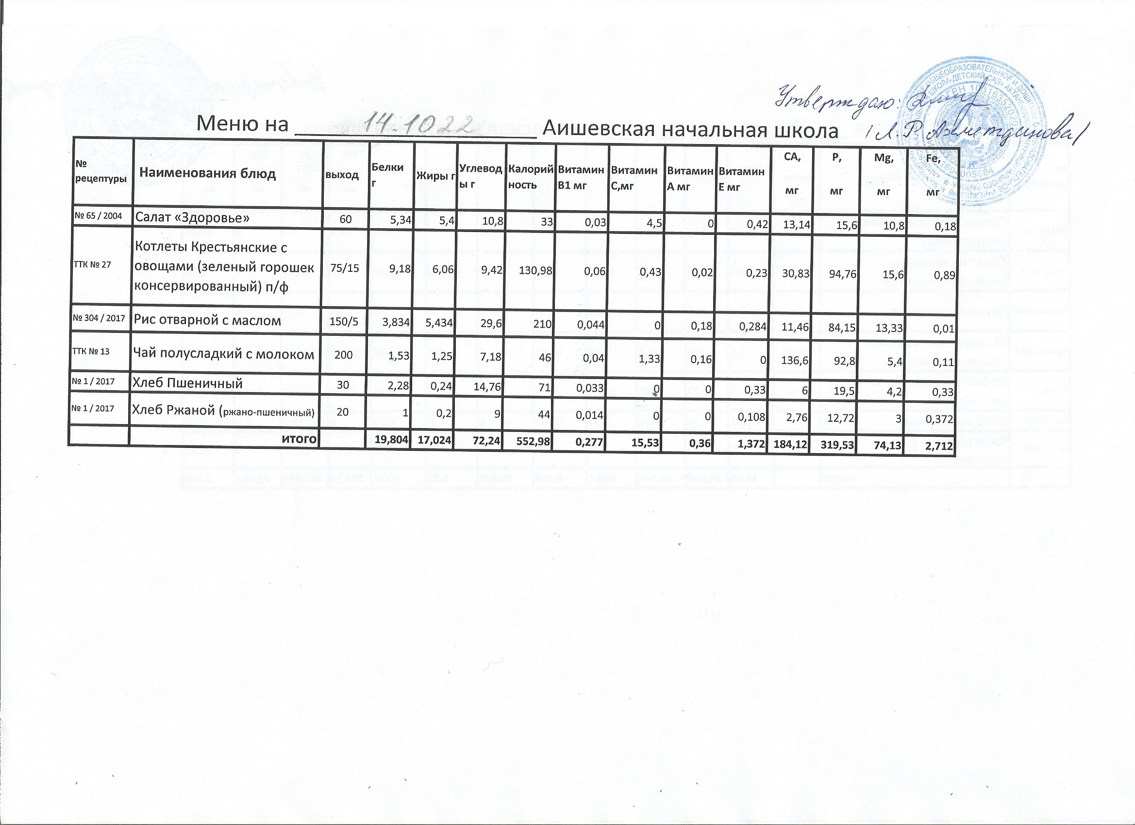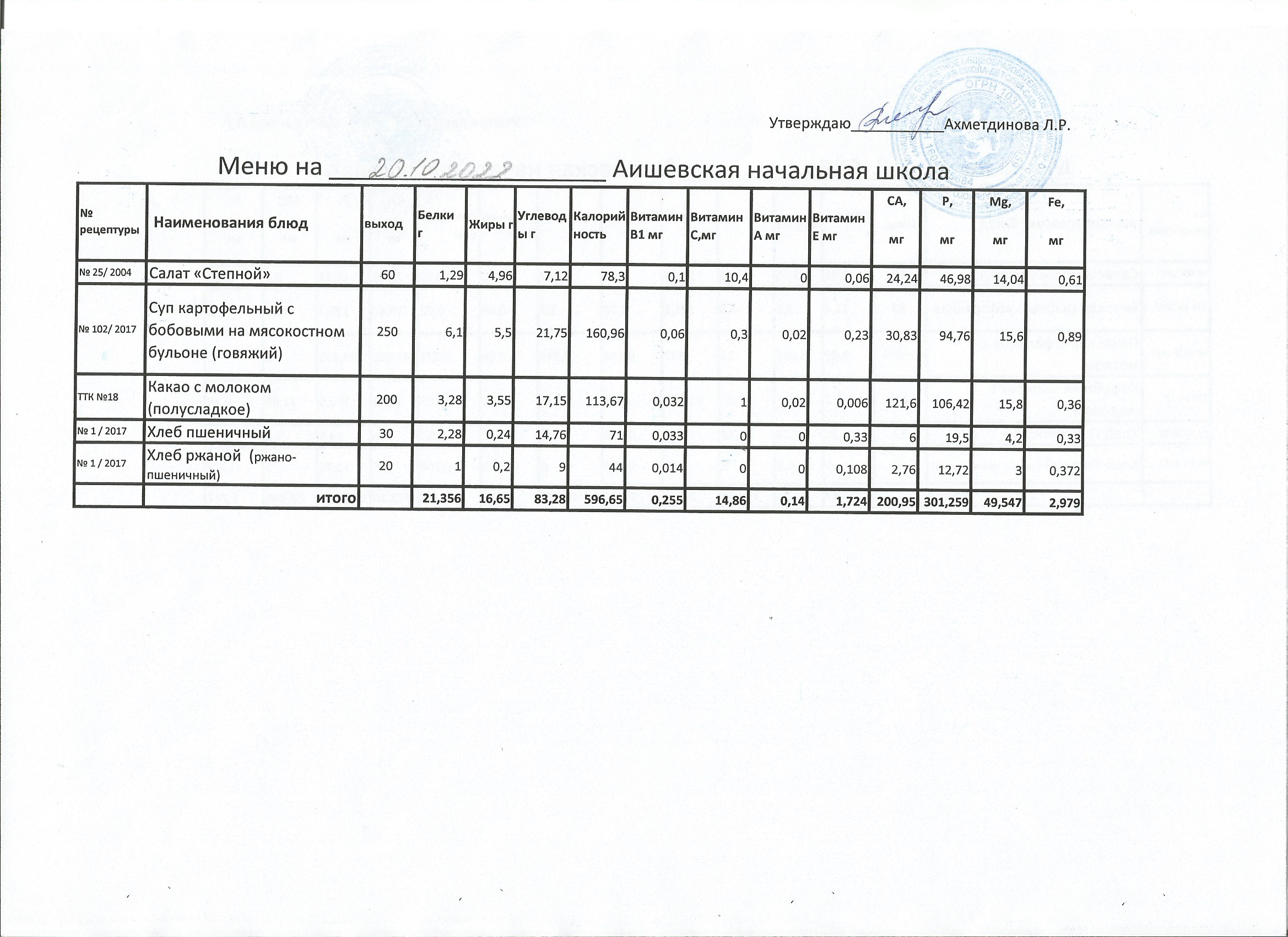 меню на 20.10.2022