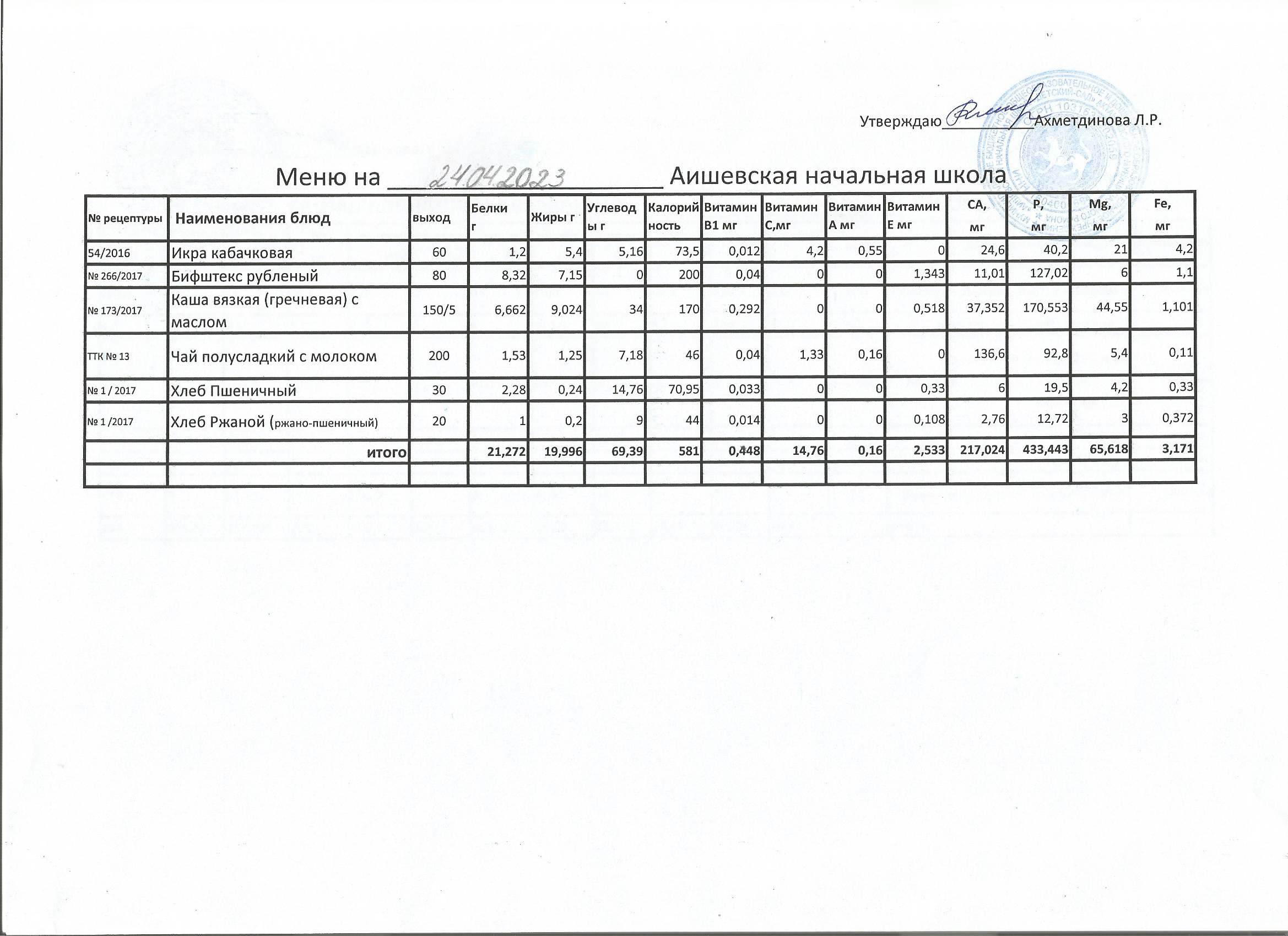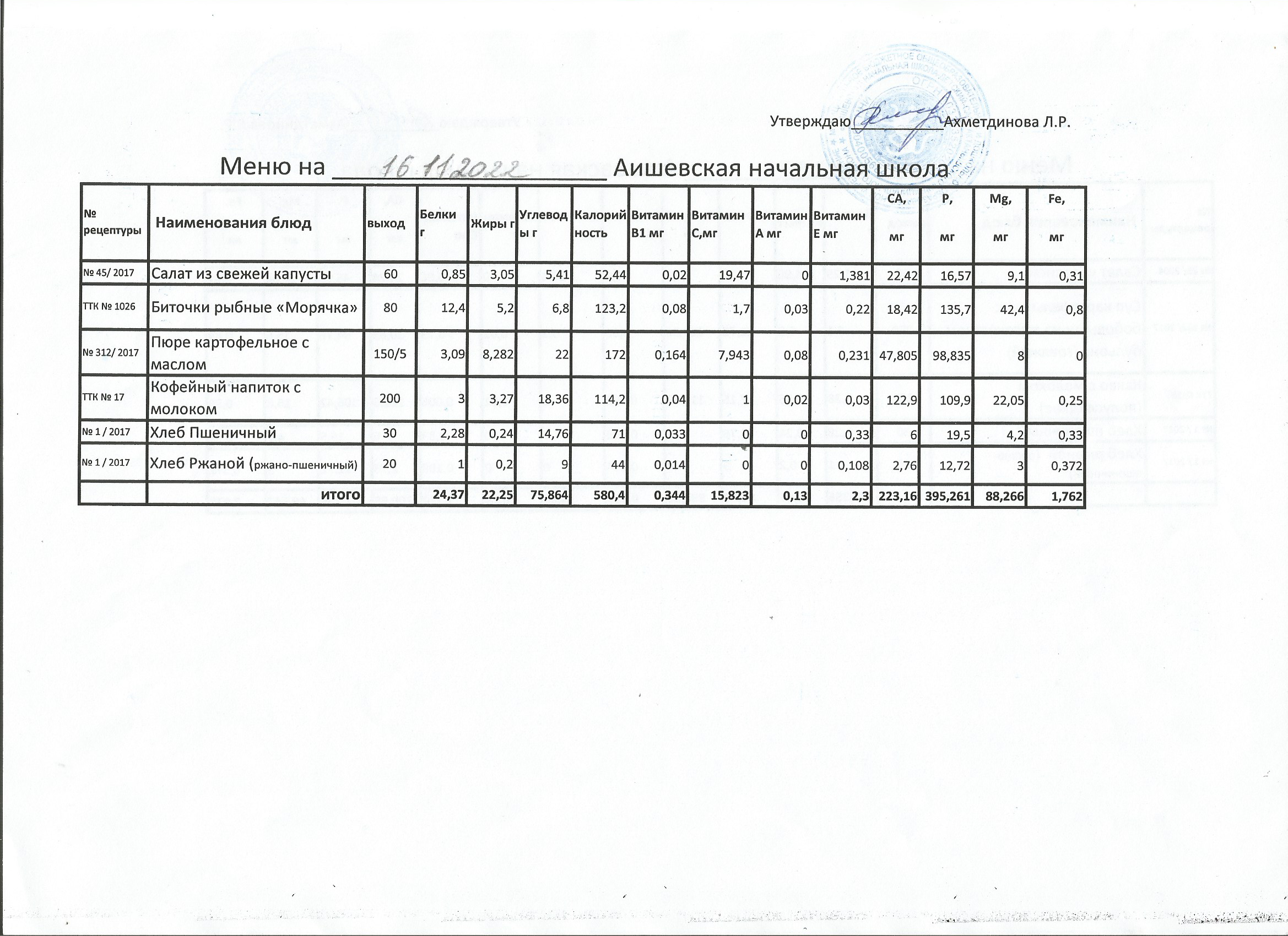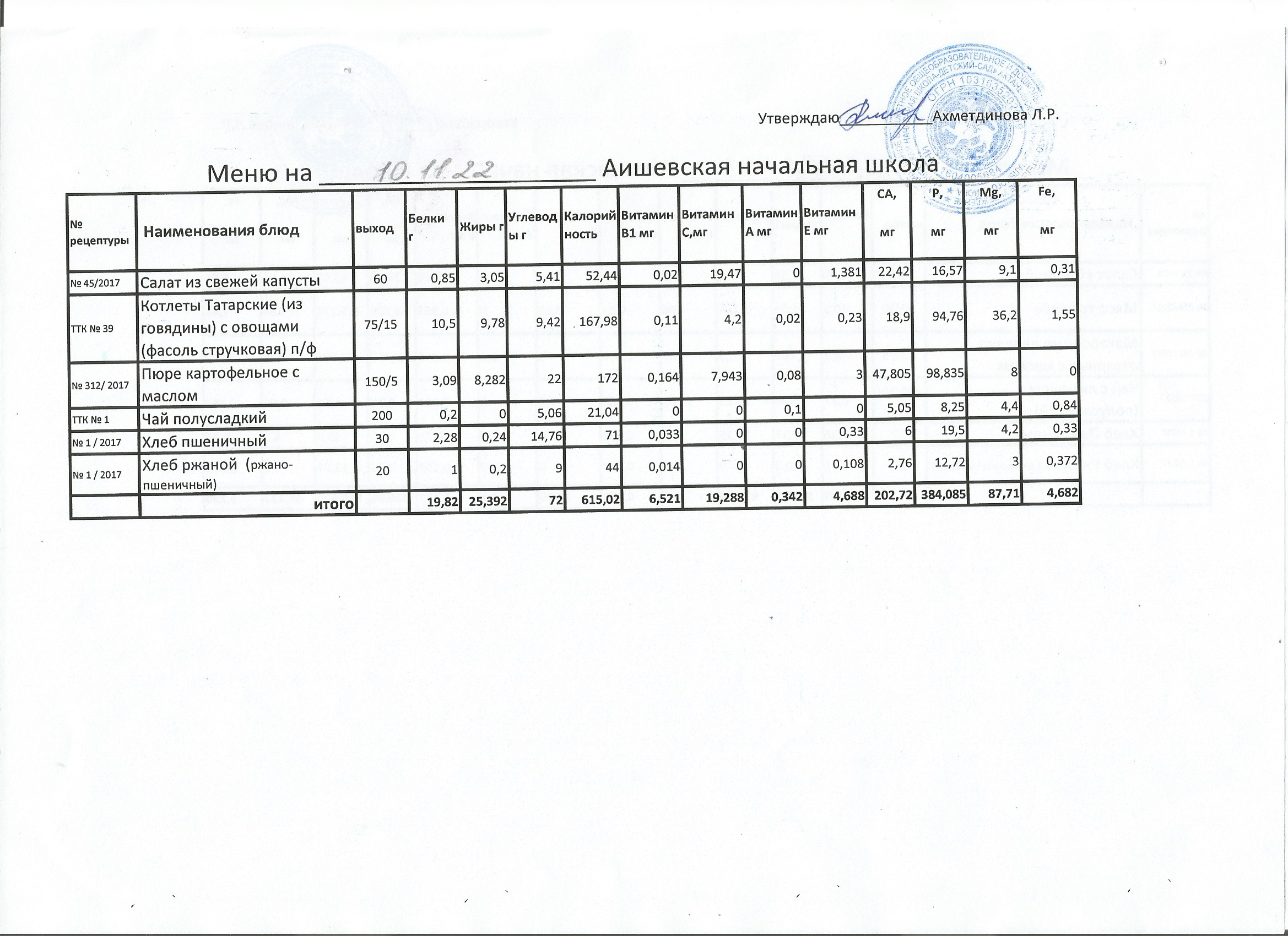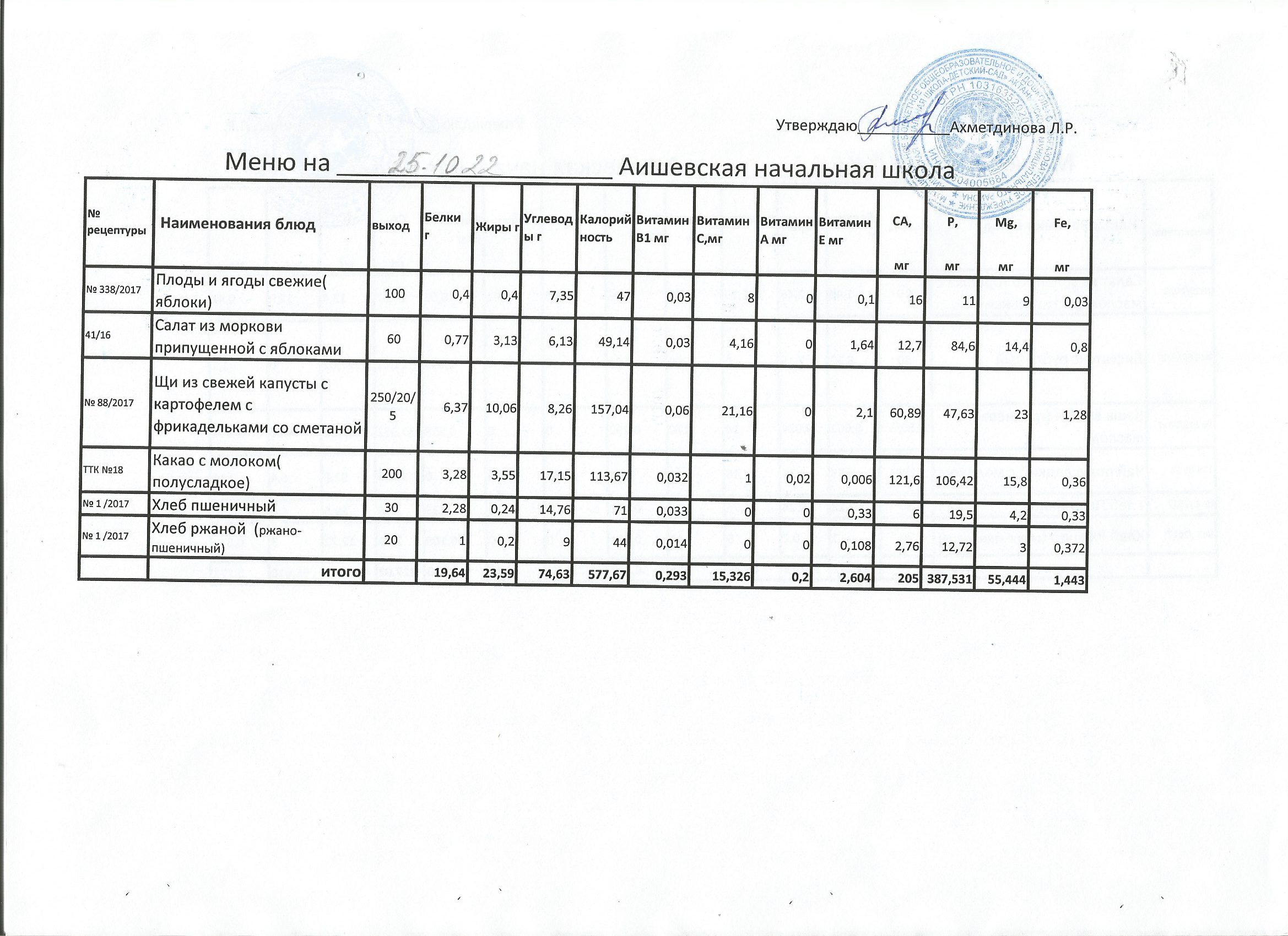 меню на 20.10.2022