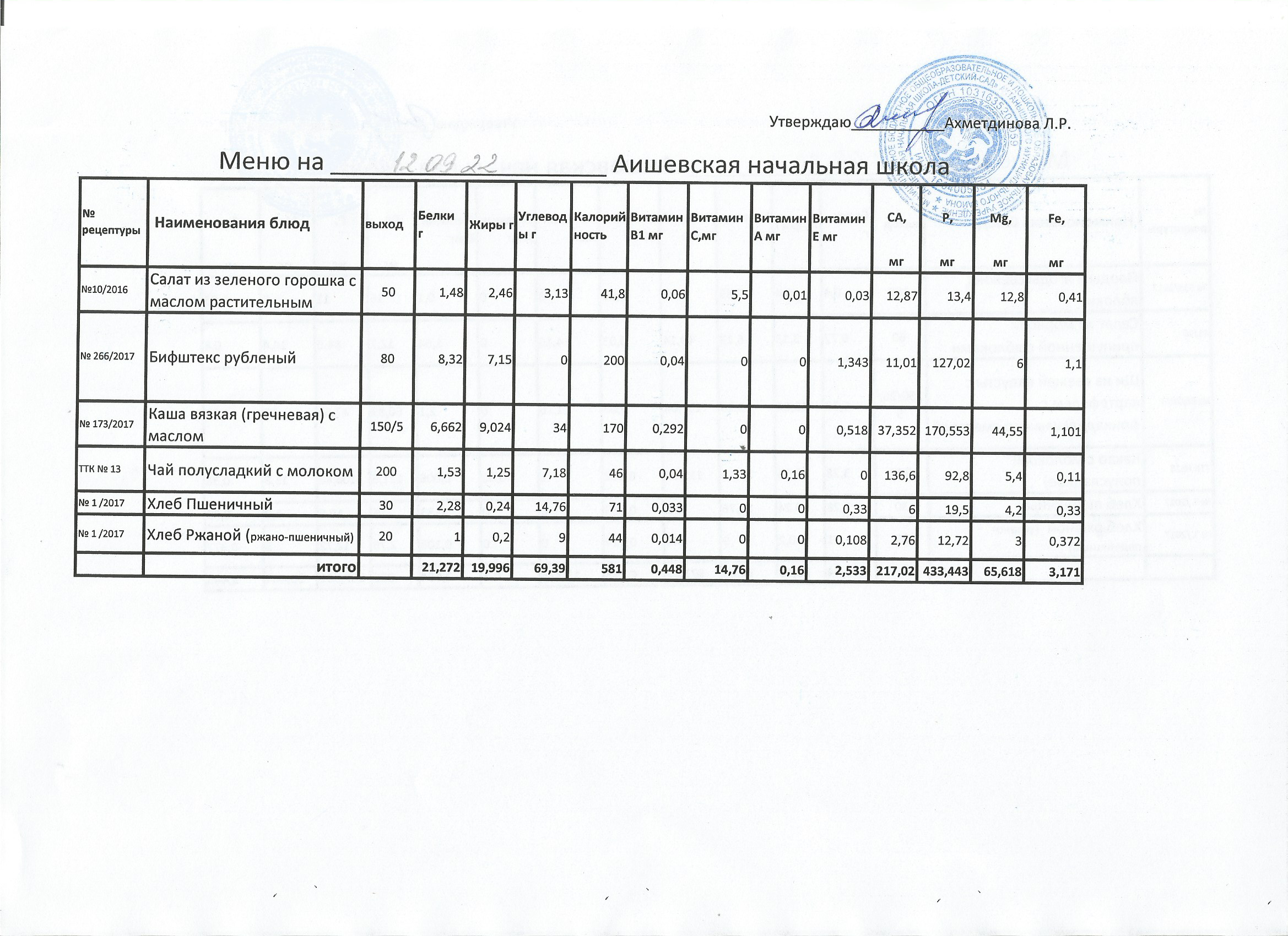 меню на 12.09.2022