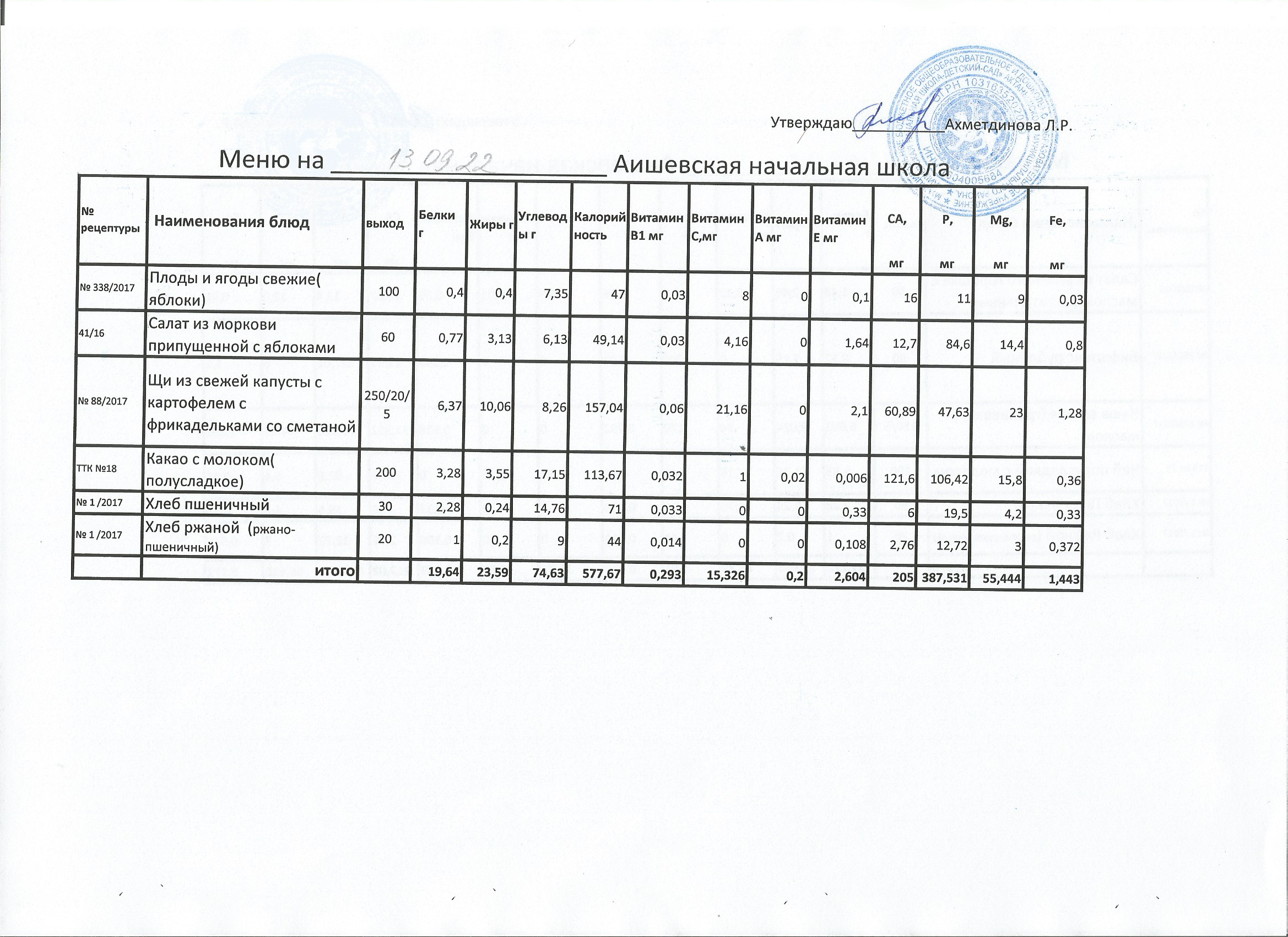 меню на 13.09.2022