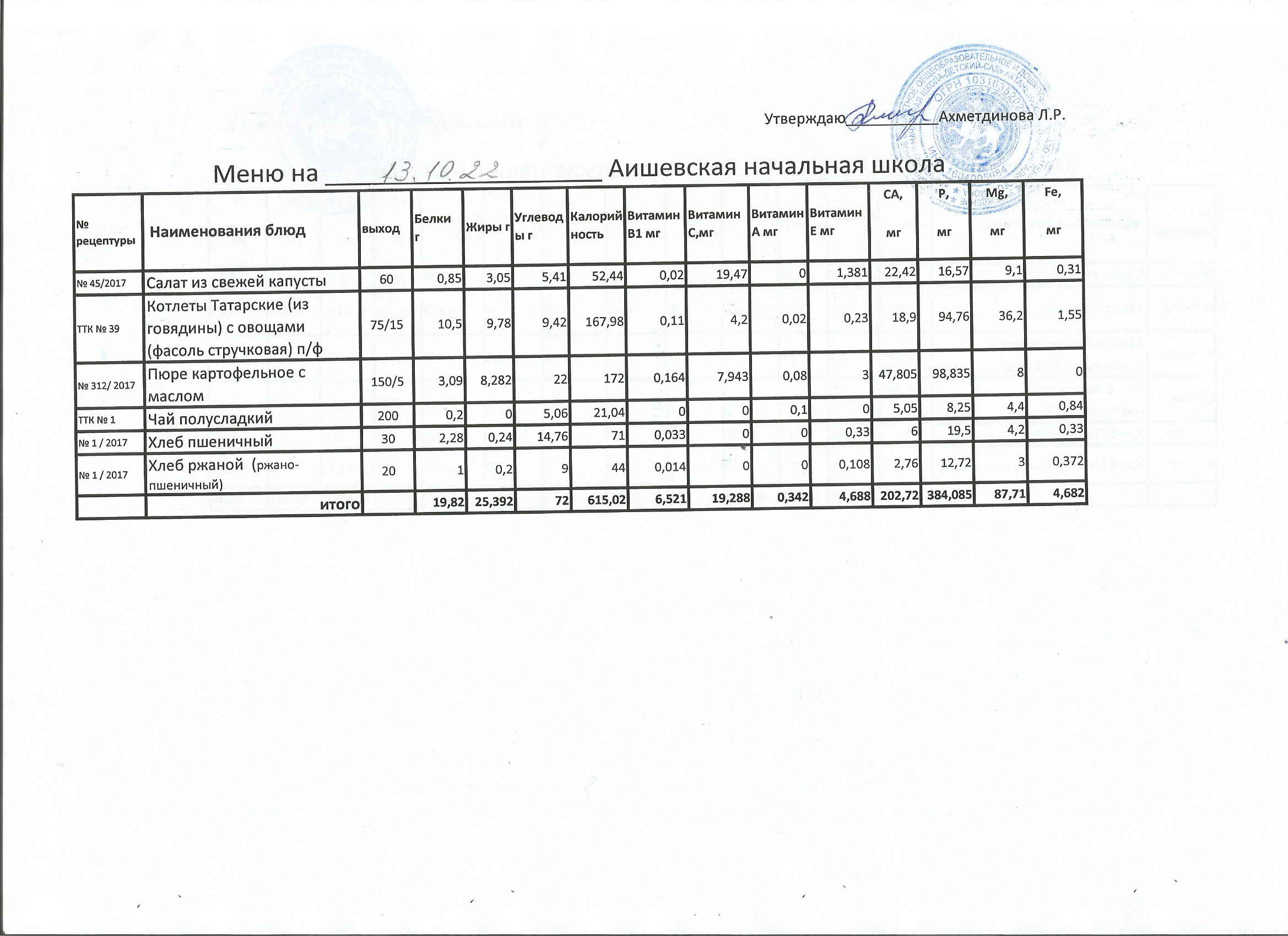 меню на 13.10.2022