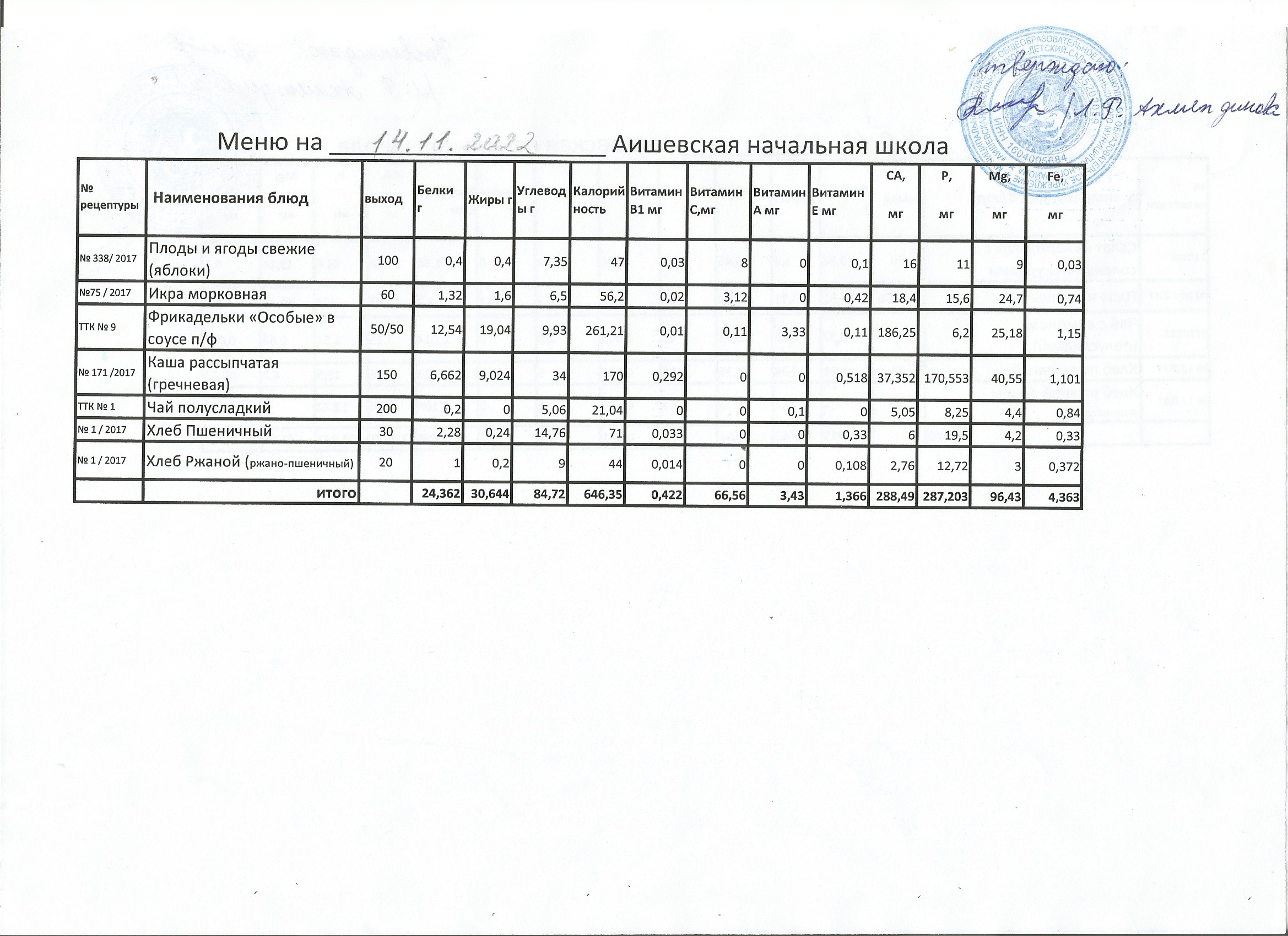 меню на 14.10.2022