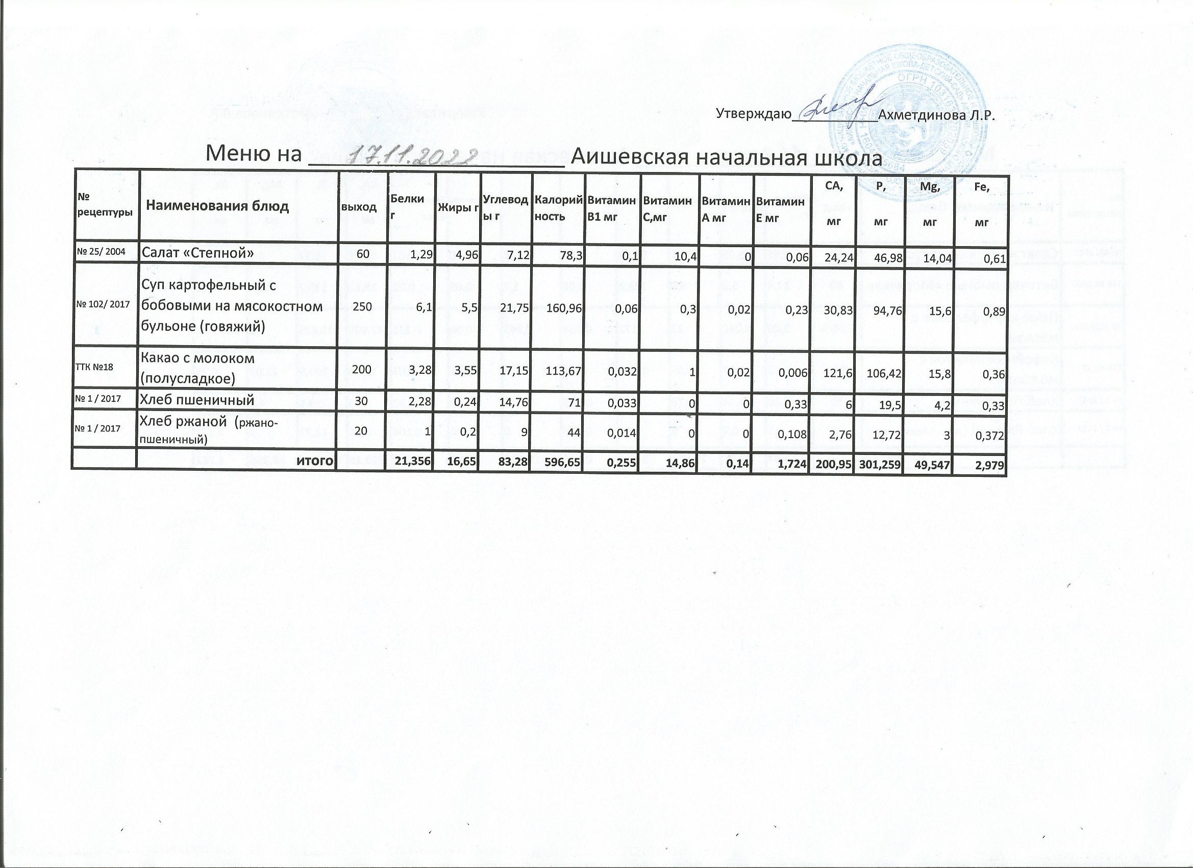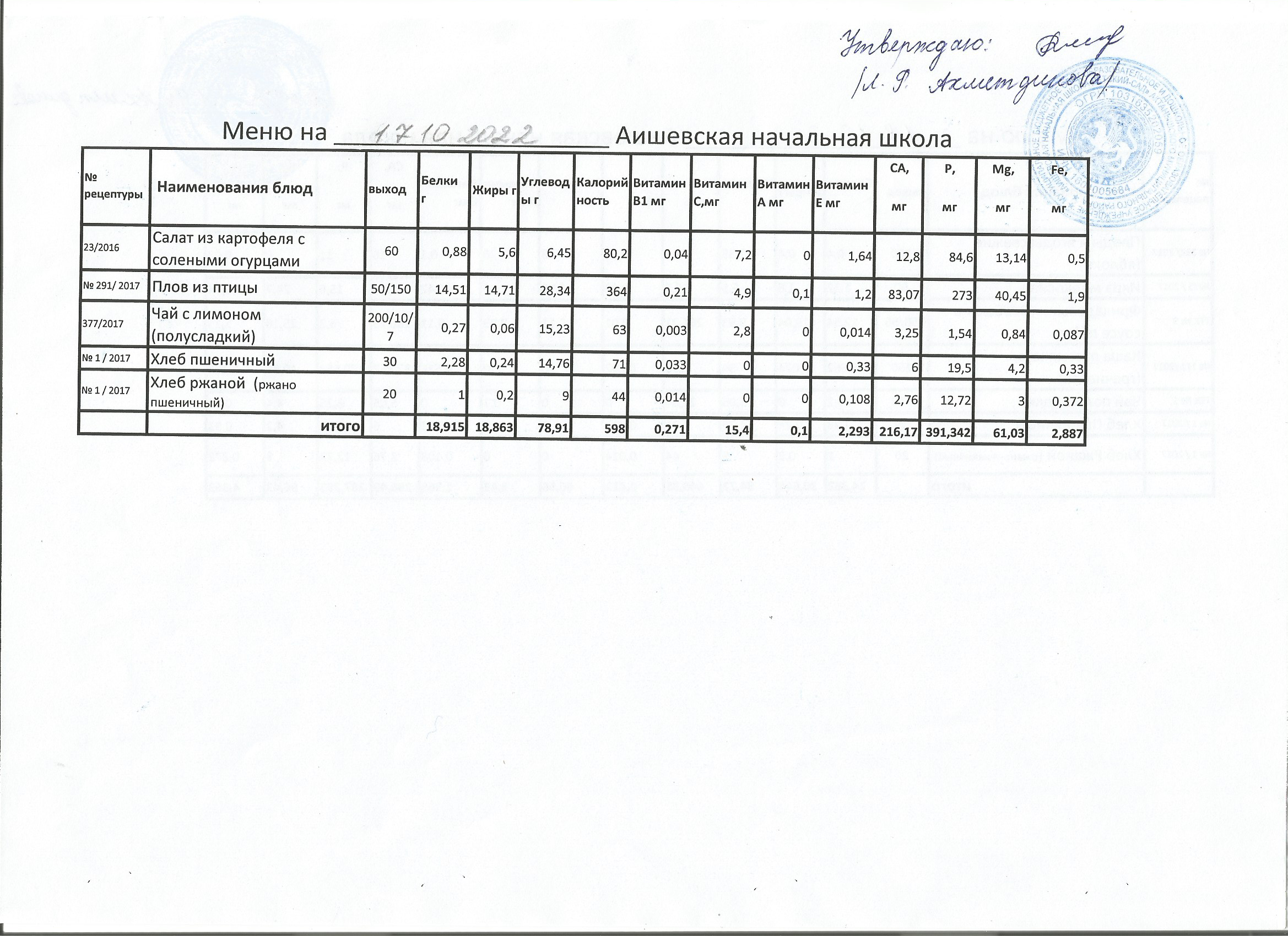 меню на 17.10.2022
