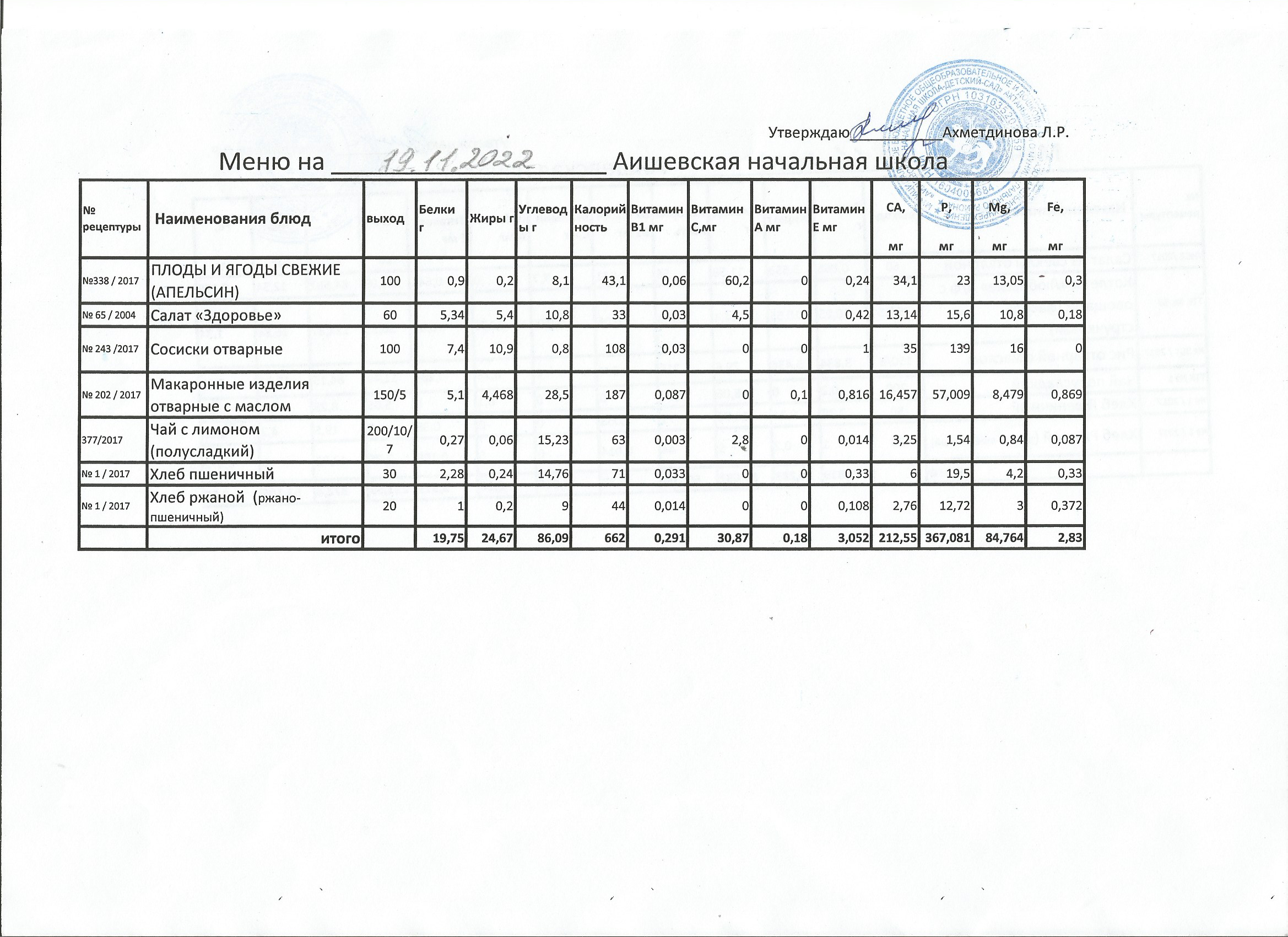 меню на 19.10.2022