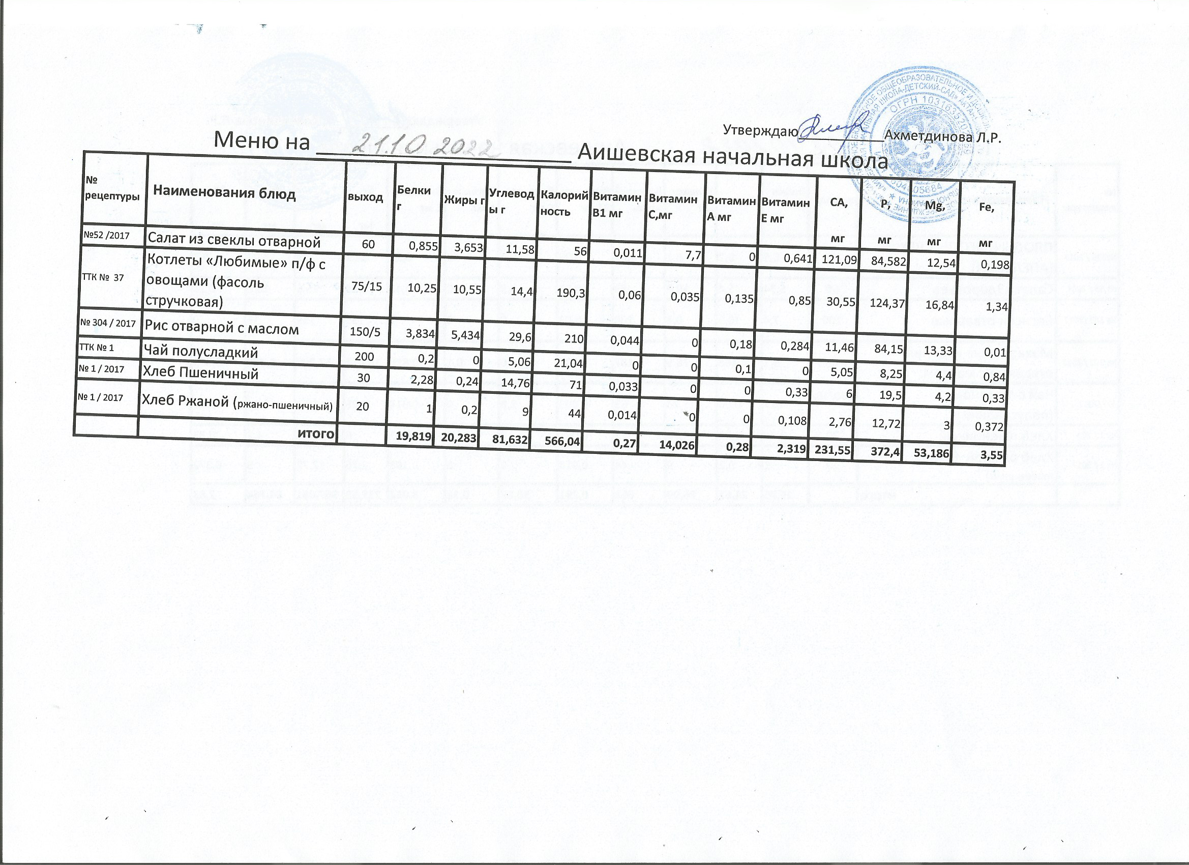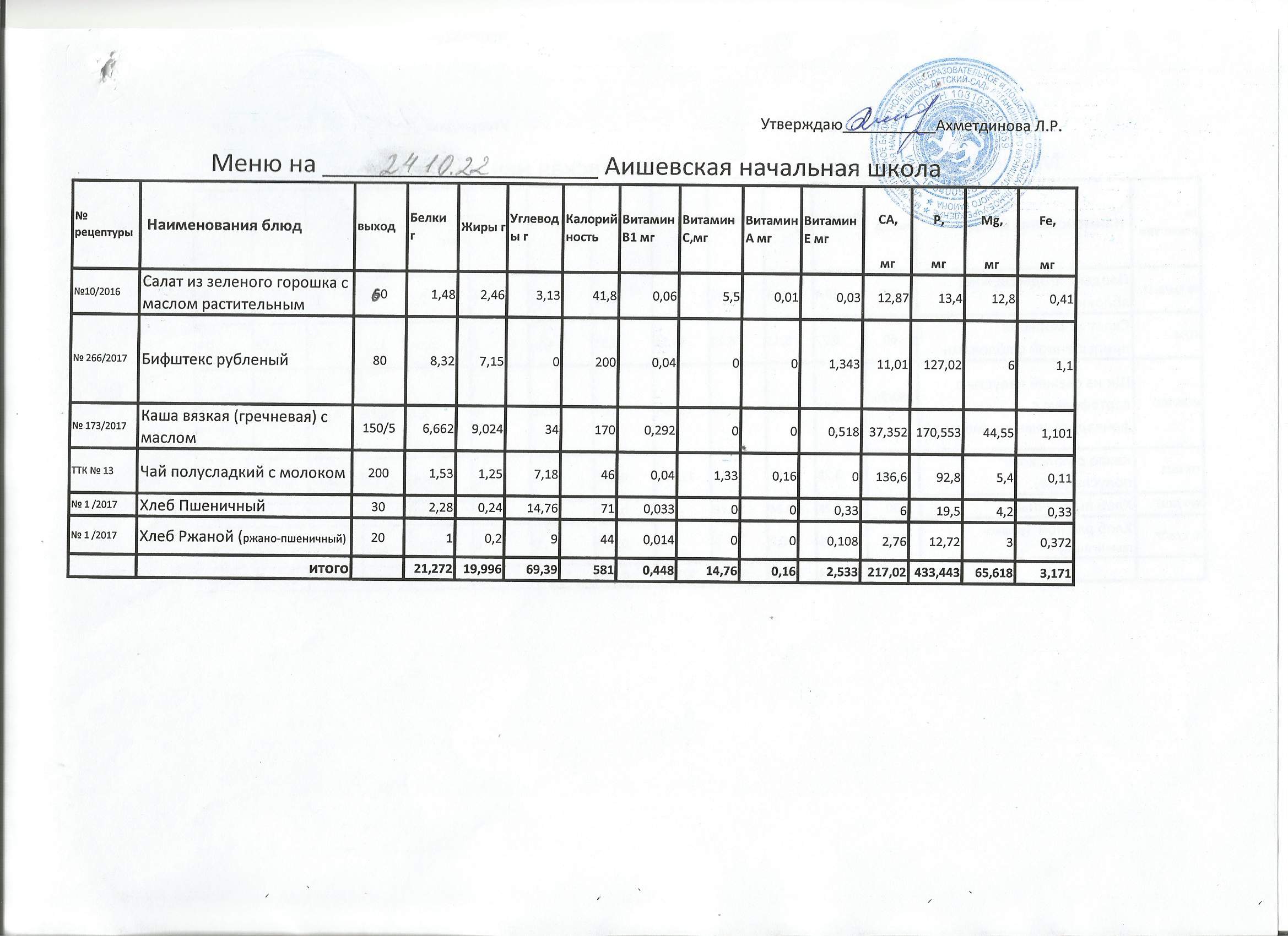 меню на 21.10.2022